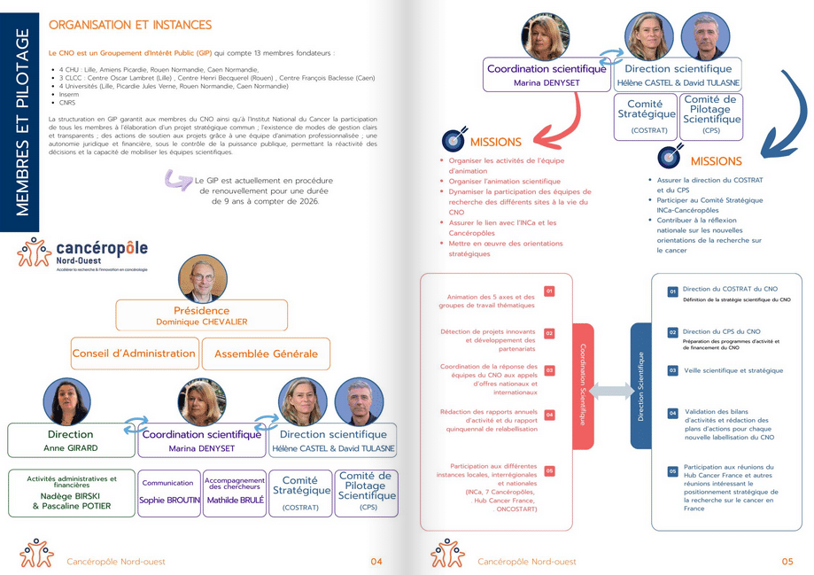 Les institutions associées : les Agences Régionales de Santé des Hauts-de-France et de Normandie, les Conseils Régionaux Hauts-de-France et Normandie, l’Institut Pasteur de Lille, l’Université de Compiègne, l’Hôpital Erasme de Bruxelles, l’Université libre de Bruxelles, l’Université Catholique de Louvain, l’Association de Recherche contre le Cancer (ARC), la Ligue contre le cancer, l’Institut de Recherche sur le Cancer de Lille (IRCL), le Groupement Interrégional de Recherche Clinique et d’Innovation (GIRCI) de l’interrégion Nord-Ouest, les Délégations Régionales à la Recherche et à la Technologie (DRRT) des Hauts-de-France et de Normandie, le groupement d’intérêt public Cycéron, l’Institut National du Cancer (INCa) et des associations de patients.